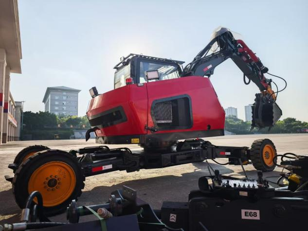 針對山地、高原等復雜地形場景,研制了輪腿爪高機動底盤,可實現(xiàn)復雜地形危險環(huán)境下的有人/無人行駛,實現(xiàn)裝備快速機動、高位越障、陡坡爬越、斜坡作業(yè)等功能。