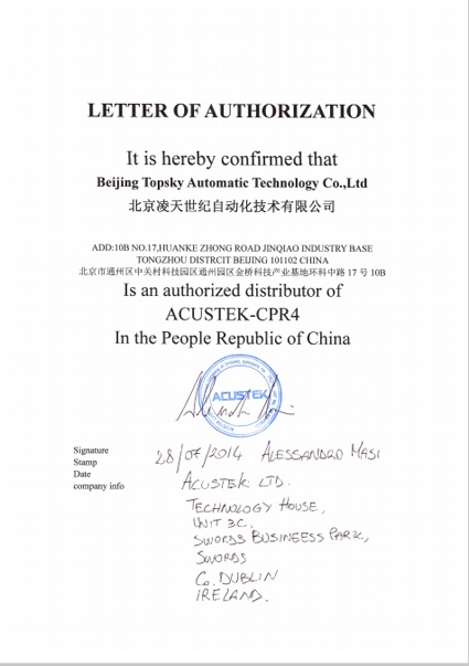 2014年7月28日,北京凌天成為 英國(guó)愛(ài)爾蘭ACUSTEK 公司 穿墻雷達(dá),門縫窺視儀 一級(jí)代理