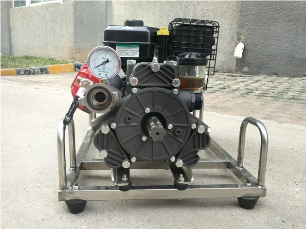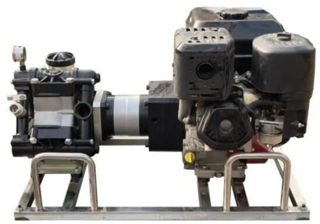 不銹鋼架,便于攜行。泵軸水平布置,減少震動(dòng)。水泵泵體為柱塞液壓隔膜泵。允許砂石顆粒通過(guò),對(duì)水質(zhì)要求低,對(duì)發(fā)動(dòng)機(jī)功率損耗小。泵組可在橫向、縱向傾斜達(dá)到25°時(shí)正常工作。水帶直徑25mm,爆破壓力18MPa,表層滌綸長(zhǎng)絲,內(nèi)襯進(jìn)口橡膠,高壓森林接口連接。水泵配備的動(dòng)力裝置為強(qiáng)制風(fēng)冷四沖程汽油機(jī)。我們的行星減速機(jī)通過(guò)特殊的處理方式,在發(fā)動(dòng)機(jī)轉(zhuǎn)數(shù)超過(guò)2000轉(zhuǎn)的情況下,不會(huì)削弱發(fā)動(dòng)機(jī)的動(dòng)力,反而有助于發(fā)動(dòng)機(jī)的動(dòng)力,提高水泵的效率。