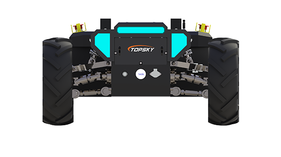 差速輪式機器人底盤采用鋰電池電源作為機器人動力源,使用無線遙控的方式遠距離操控機器人,并可定制復(fù)雜的操作模式,主控提供串口/標準CAN總線作為通訊接口。整機采用四輪獨立驅(qū)動、四輪差速轉(zhuǎn)向以及前后雙橫臂獨立懸架結(jié)構(gòu),具有IP65防塵防水能力,能夠在多種復(fù)雜環(huán)境運行。同時,整機采用模塊化設(shè)計,四獨立懸掛、左右電控箱及電池可快速拆卸維護更換。可搭載多種設(shè)備從而代替人進行高效率作業(yè)。