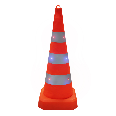 該發(fā)光路錐為LED發(fā)光伸縮路錐,高度通常為90cm,加頂燈高95cm,收納尺寸340340110mm,單重3kg。它采用300D防水防刮花牛津布材質(zhì),底座加大加寬,錐體重量集中在底部,穩(wěn)定性好,不易被風(fēng)吹倒。具備常亮、快閃、慢閃三種發(fā)光模式,可在不同場景下按需切換,夜間警示效果好。