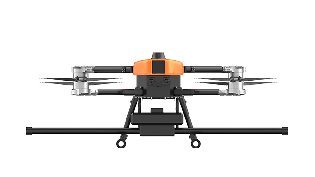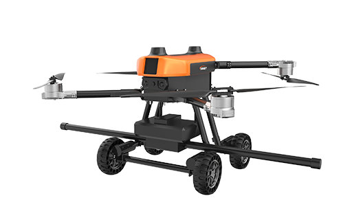 本無人機(jī)為北京凌天智能裝備集團(tuán)研發(fā)的陸空兩棲航磁探測無人機(jī),采用四旋翼機(jī)身設(shè)計,載重大,續(xù)航長,并且機(jī)體折疊標(biāo)準(zhǔn)化負(fù)載接口。同時,該無人機(jī)具備陸空兩棲功能,可以在地面行駛,行走系統(tǒng)可快拆。