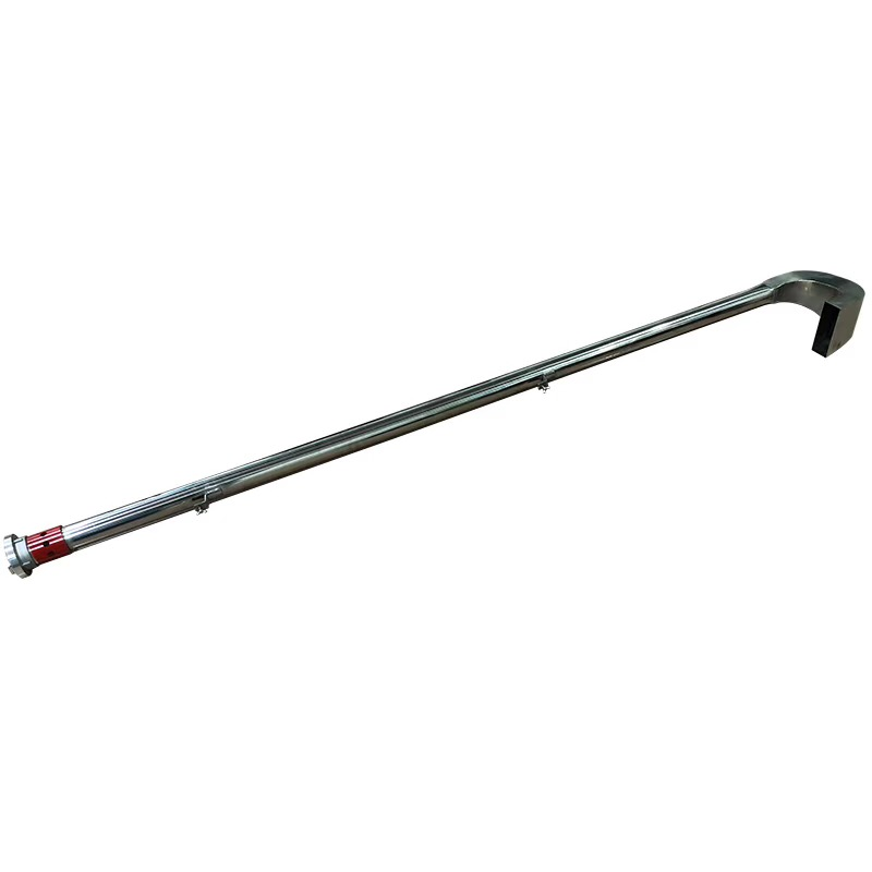 泡沫鉤管是一種移動式泡沫滅火設備,用以產生和噴射空氣泡沫,撲救沒有固定泡沫滅火裝置的地下、半地下和小型油罐的油類和汽油火災。泡沫鉤管由管牙接扣、空氣泡沫產生器、泡沫管三個部分組成。鉤管其上部有彎形噴管,用以鉤在著火的油罐壁上,向罐內噴射泡沫。其下端為空氣泡沫產生器,裝有65毫米管牙接扣,用水帶連接,輸送空氣泡沫混合液。當泡沫混合液混合經過多孔板通過錐管逐漸擴散,形成良好的空氣泡沫,并從彎形噴管噴出,撲救火災,操作簡單方便。