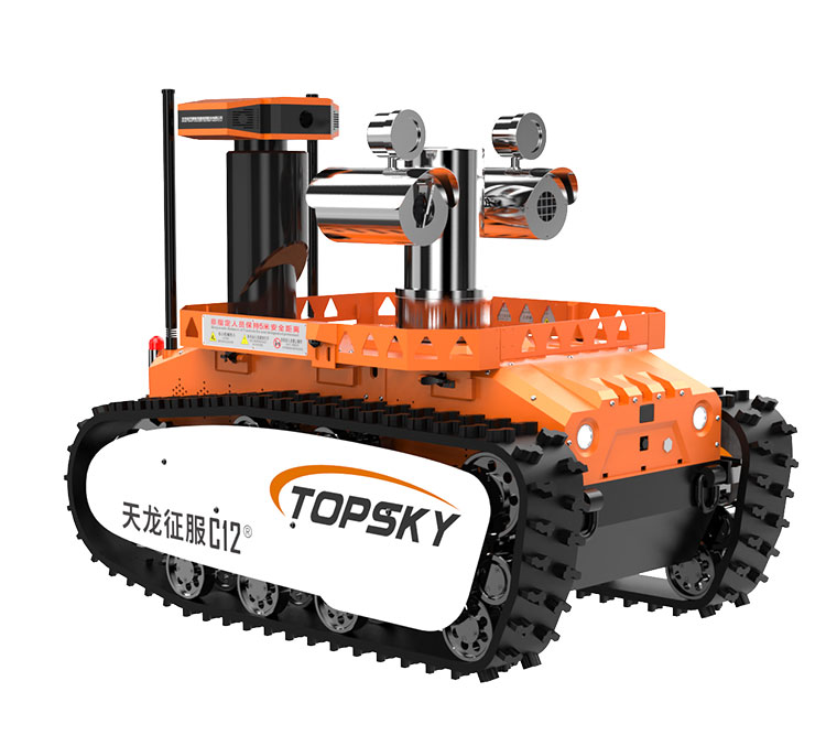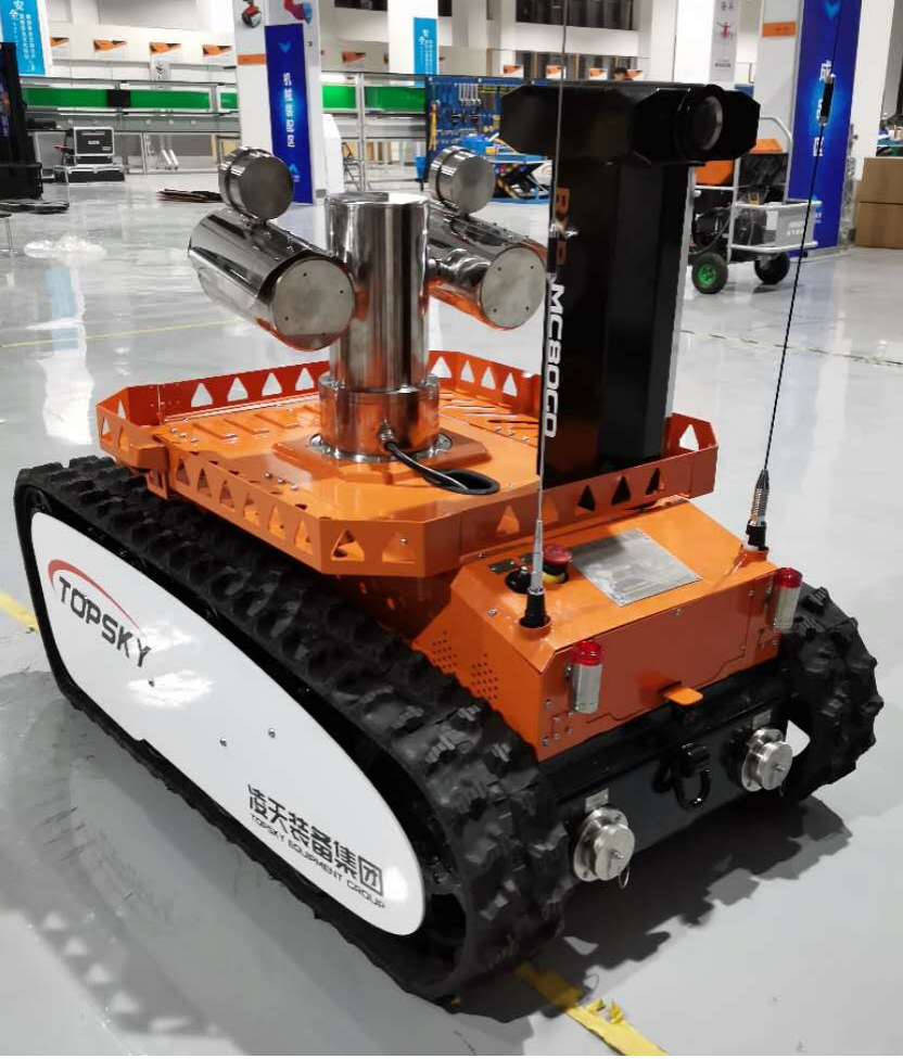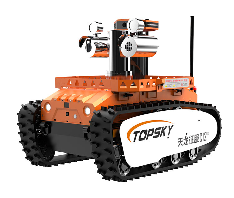 主要功能:履帶式防爆機(jī)器人底盤采用鋰電池電源作為動(dòng)力源,使用無線遙控的方式遠(yuǎn)距離操控,可搭載形式多樣,原地旋轉(zhuǎn)設(shè)計(jì)可使得運(yùn)更靈活;具備音視頻偵察、有毒有害氣體偵察、災(zāi)區(qū)環(huán)境偵察功能,對(duì)提高救援安全性、減少人員傷亡具有重要意義。